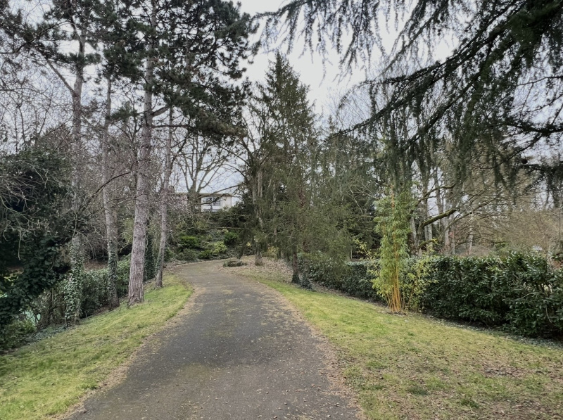 Le jardin, intime et sans vis-à-vis, accueille une piscine en bois semi-enterrée et offre une vue dégagée sur la ville, magnifiée par une triple exposition Est, Sud et Ouest assurant un ensoleillement tout au long de la journée.