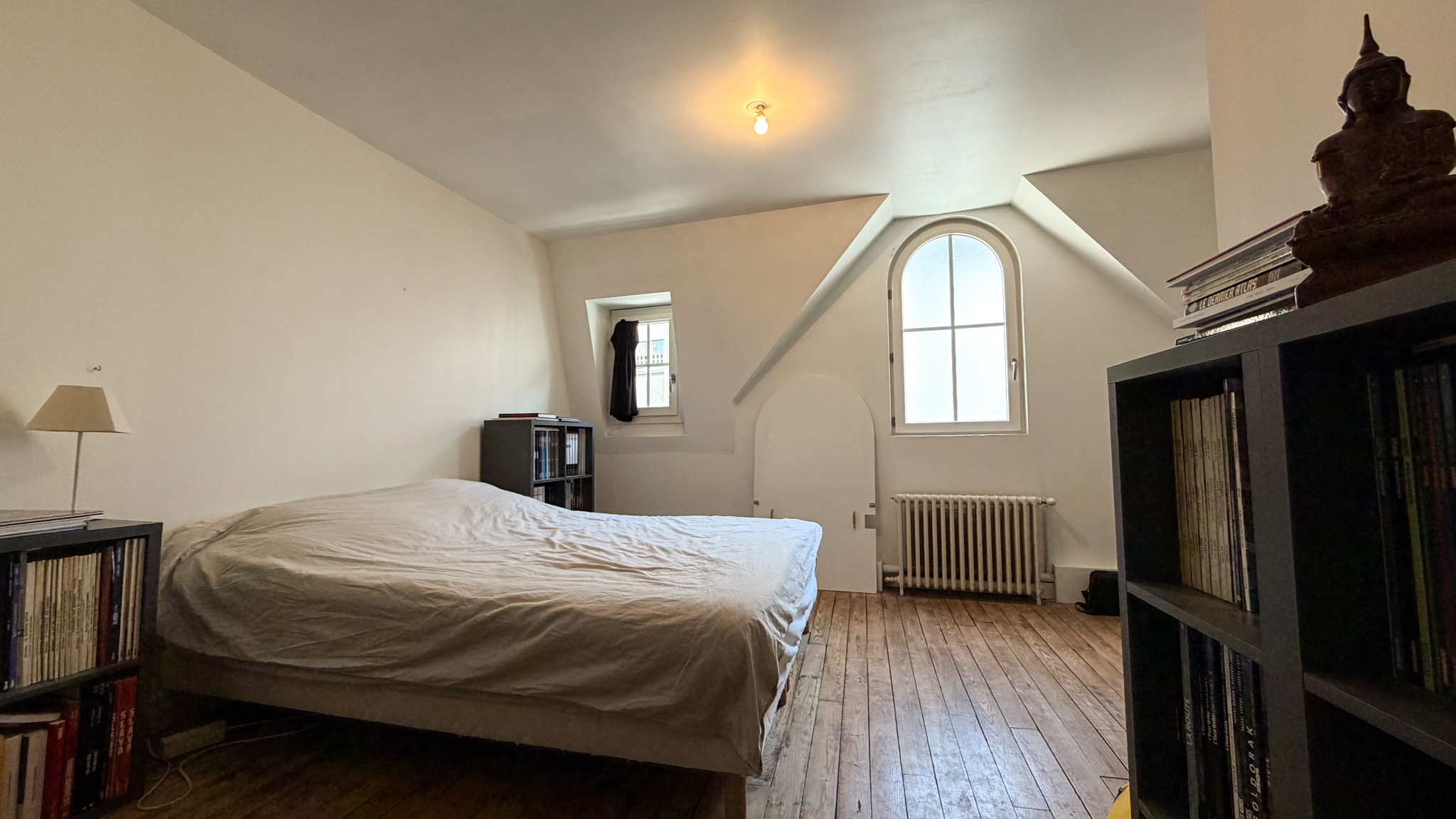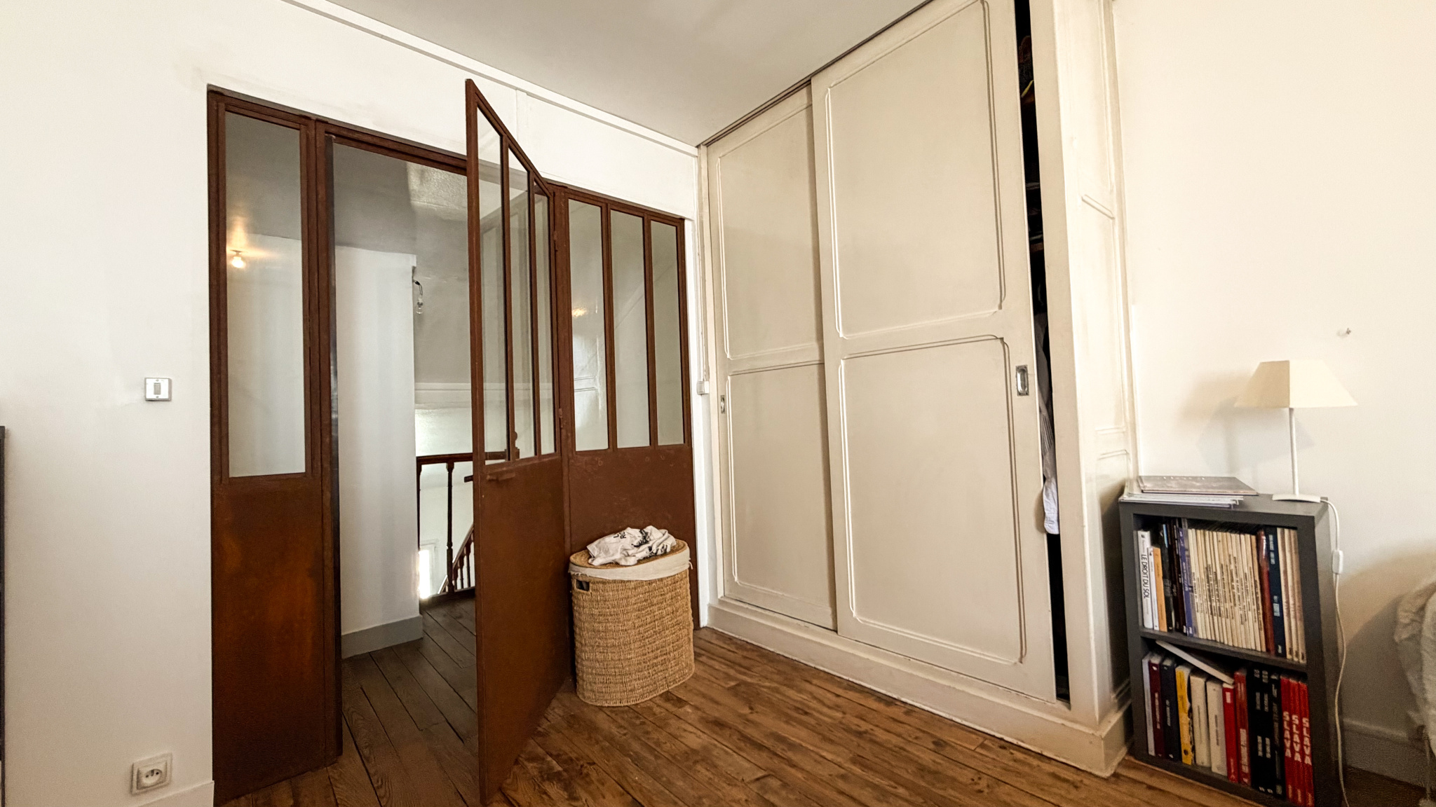 Au premier étage, deux chambres élégantes se partagent une salle de bain avec WC. Le second étage accueille une somptueuse suite parentale, mise en valeur par une verrière en acier au charme indéniable, accompagnée de sa salle d’eau, d’un toilette et d’un accès à un grenier. La cour dispose par ailleurs de plusieurs espaces de rangement pratiques.