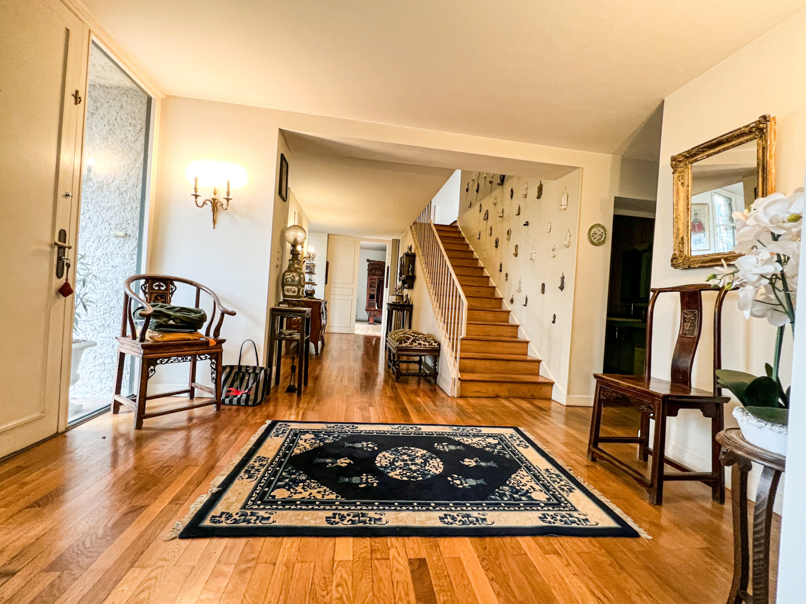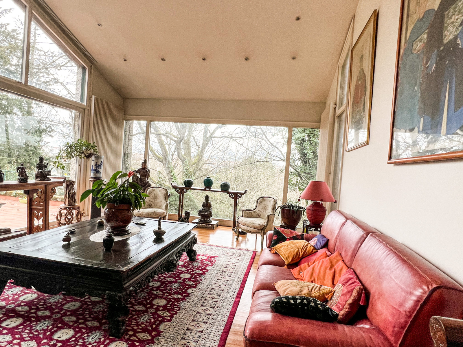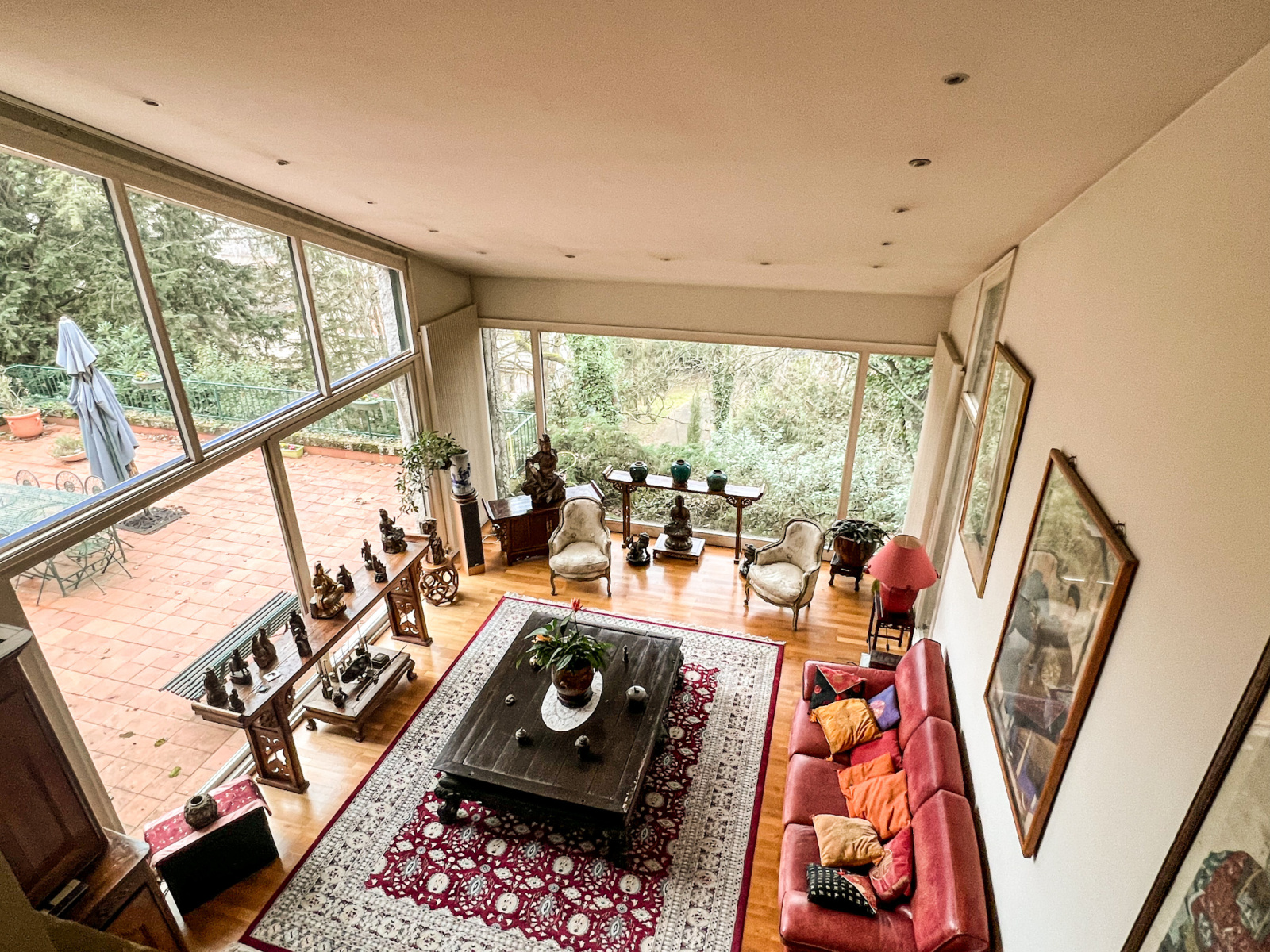 Alliant l'intimité et le charme des années 70, elle mesure environ 280m2 sur un terrain arboré d'environs 3000m2.