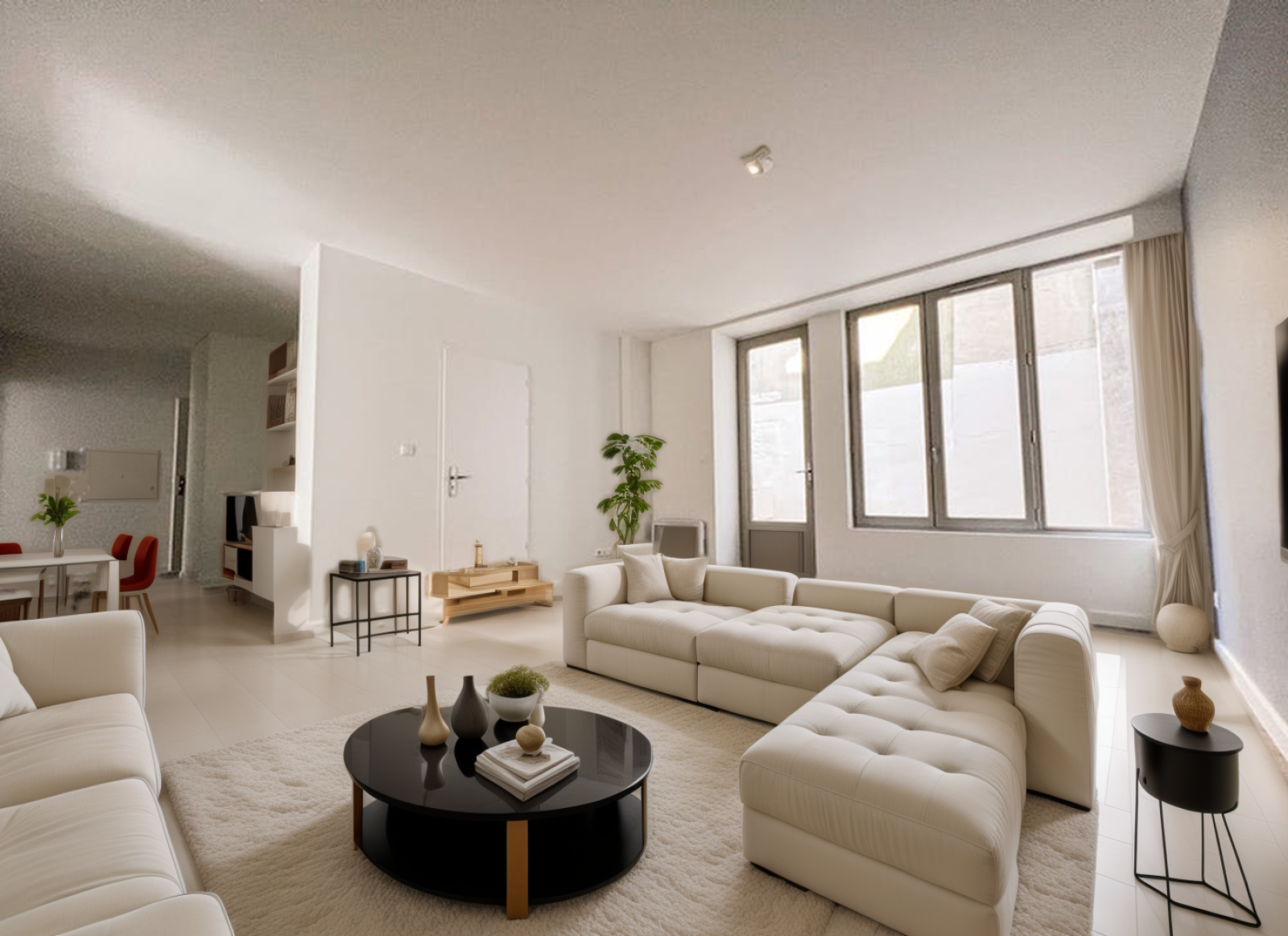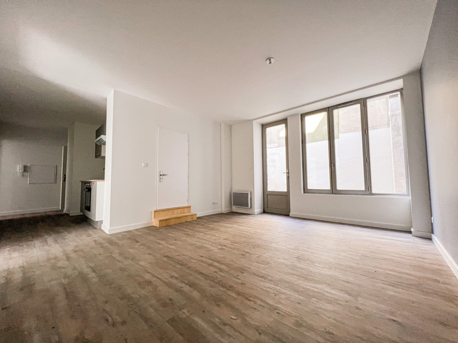 Belle luminosité dans cet appartement dont le séjour donne sur l'extérieur, cuisine ouverte.