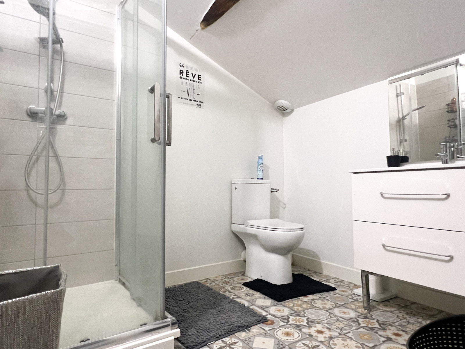 -Au 2e étage : un appartement de type T2 de 50 m², également loué 600 € charges comprises, offrant un salon avec cuisine équipée et aménagée, une chambre, une salle d’eau et un WC.