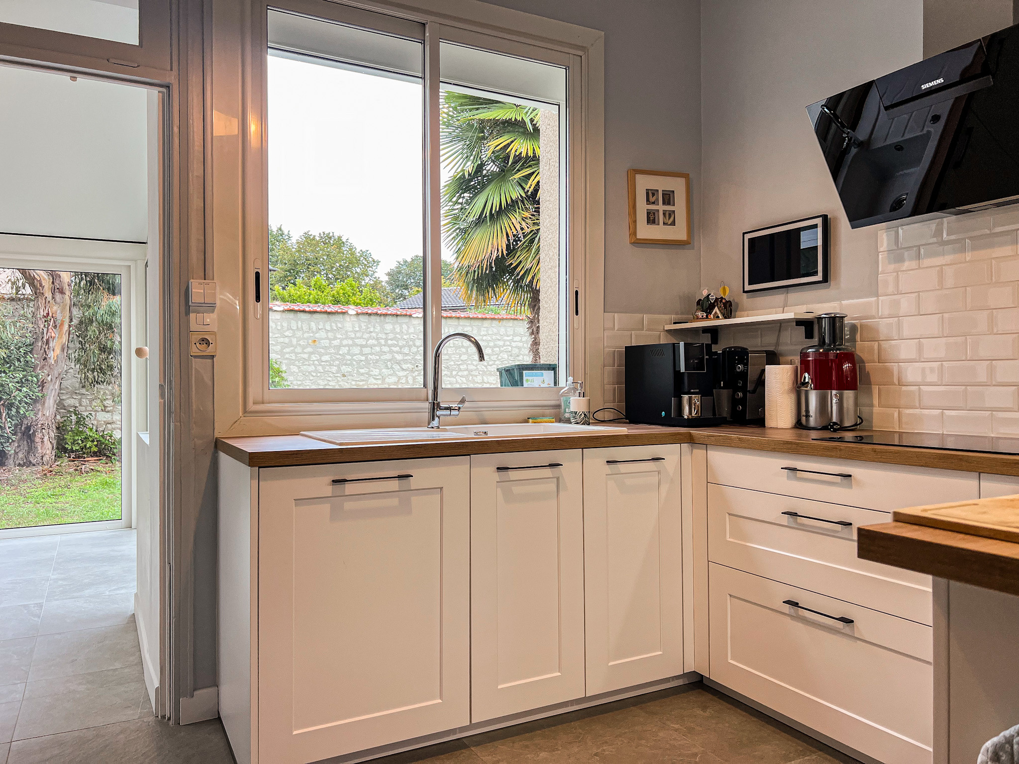 Côté extérieur, le jardin arboré de 462 m² invite à la détente : palmiers, bambous et diverses essences créent un cocon verdoyant, à l’abri des regards. Pour plus de confort, une borne de recharge pour véhicule électrique a été installée.
