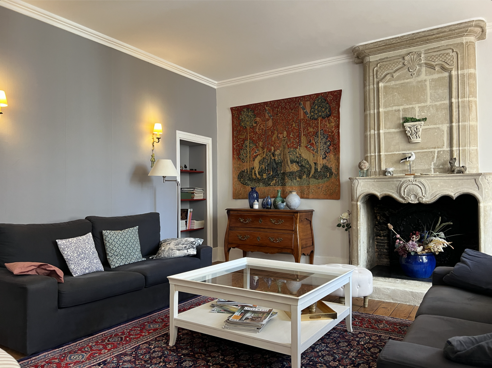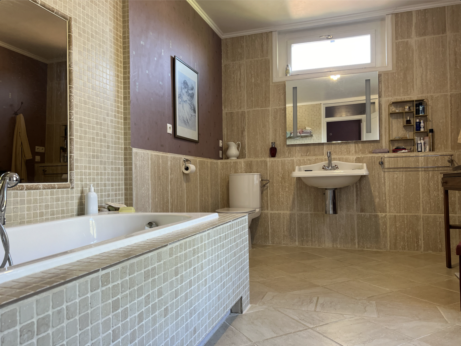 Au premier étage : Grand salon avec espace bibliothèque, 3 chambres dont 2 suites parentale avec salle de bain. Grenier.