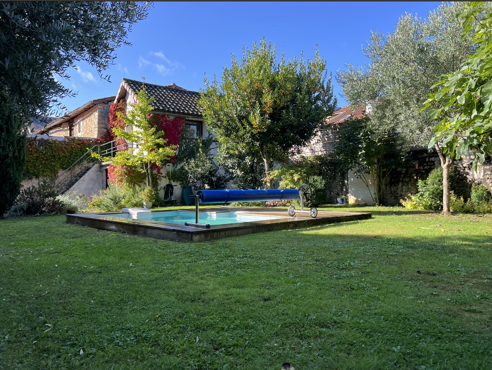 D’une superficie totale de 626m2, le jardin comprend une piscine au chlore non chauffée de 10m3 d’eau (2,5mx5mx1m).